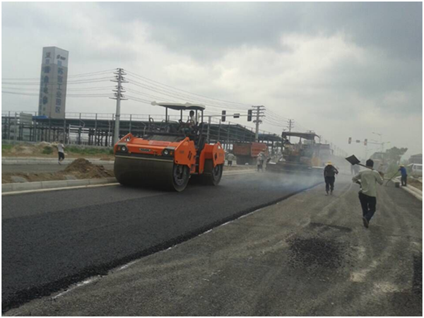 莫愁湖路東延段工程圓滿完成瀝青攤鋪