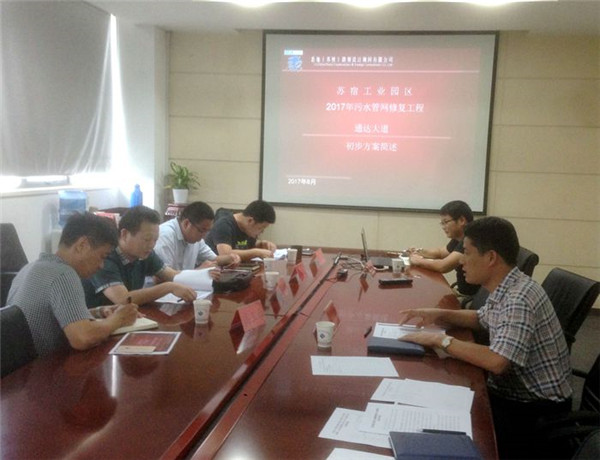 根據(jù)園區(qū)污水規(guī)劃修編意見2017年建設計劃,開發(fā)公司啟動商住區(qū)通達大道污水維修項目。為確保維修方案安全可靠,近日,開發(fā)公司組織召開通達大道污水管道改造工程方案評審會,特邀設計、建設、規(guī)劃和施工四個方面共五名專家,并邀請園區(qū)規(guī)劃建設局相關(guān)處室人員參加會議。