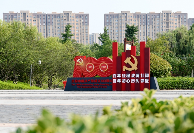 在園區(qū)的廣場、公園、學(xué)校等處,“建黨一百周年”、“核心價值觀”、“中國夢”、“不忘初心”等主題雕塑隨處可見;園區(qū)主要道路節(jié)點鮮花綻放;青海湖西路燈桿懸掛國旗,公交站臺櫥窗張貼節(jié)日宣傳畫面,道路被鮮艷的紅色浸染,讓園區(qū)洋溢著喜慶、熱烈的節(jié)日氣氛。