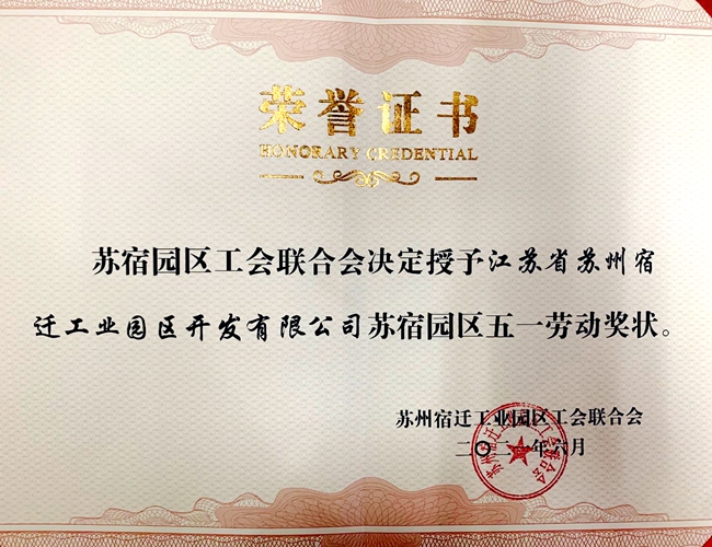開發(fā)公司榮獲“蘇宿園區(qū)五一勞動(dòng)獎(jiǎng)狀”