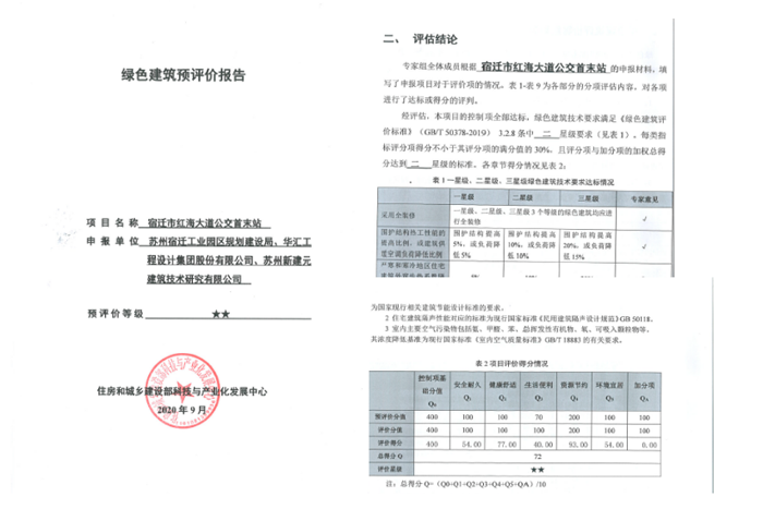由開發(fā)公司代建的紅海大道公交首末站項(xiàng)目順利通過了住房和城鄉(xiāng)建設(shè)部科技與產(chǎn)業(yè)發(fā)展中心組織的第十四批綠色建筑預(yù)評價(jià),并獲得預(yù)評價(jià)報(bào)告。該項(xiàng)目是按照最新《綠色建筑評價(jià)標(biāo)準(zhǔn)》(GB/T 50378-2019,以下簡稱“新國標(biāo)”)進(jìn)行評價(jià)的二星級綠色建筑。