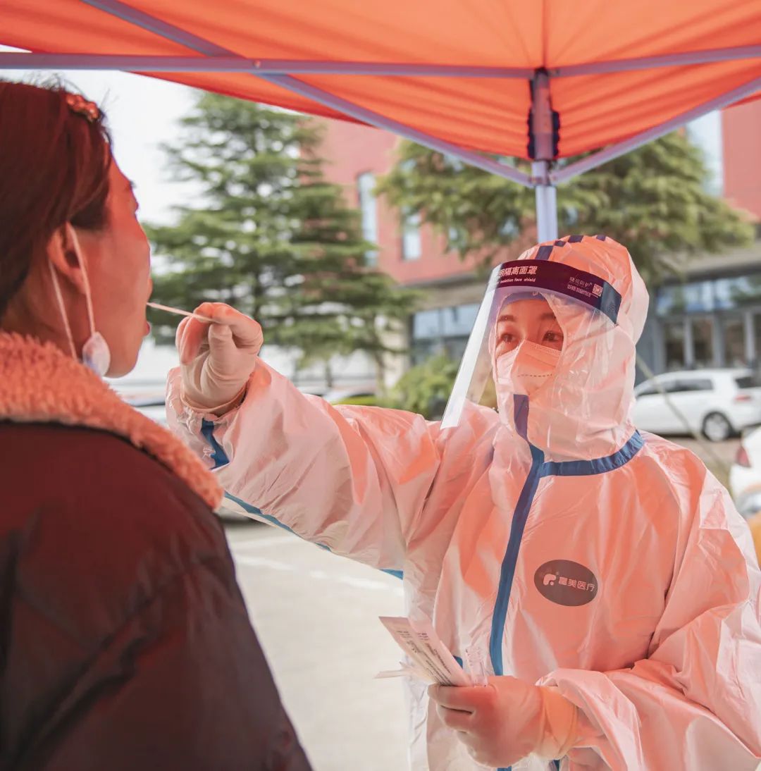 圖為3月21日,工業(yè)坊廠區(qū)各企業(yè)開展第二輪核酸抽檢工作,對保潔、保安、食堂工作人員做到每日一檢,工業(yè)坊各企業(yè)每天抽檢總?cè)藬?shù)的20%,做到一周內(nèi)全員應(yīng)檢盡檢。