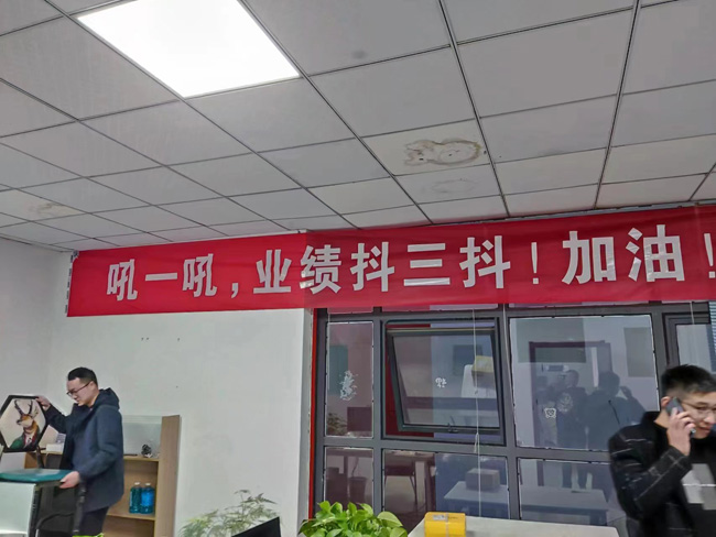 走進(jìn)騰輝家具,一條催人奮進(jìn)的條幅“將來(lái)的你一定會(huì)感激現(xiàn)在拼搏的你”映入眼簾,四通科技的“不吃飯,不睡覺(jué),敲著鍵盤數(shù)鈔票”條幅簡(jiǎn)單明了催人沖業(yè)績(jī),還有的拉出 “吼一吼,業(yè)績(jī)抖三抖!” 這些熱血沸騰的條幅巧妙打造“備戰(zhàn)”主題,為“雙11”預(yù)售烘托濃厚氛圍。