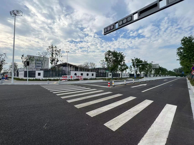 為保障宿遷市蘇州外國語實驗學校上下學期間周邊道路安全通暢,市政工程部根據(jù)園區(qū)現(xiàn)行道路情況,結合交通行政主管部門意見,在學校周邊道路設置學校警示牌、震蕩標線和部分道路中間增加隔離護欄等內容。