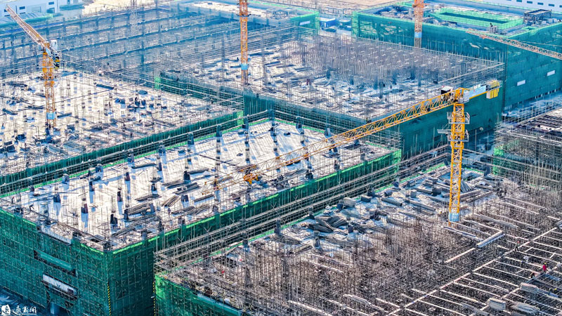 1月7日,蘇宿工業(yè)園區(qū)智慧信息產(chǎn)業(yè)園項(xiàng)目施工現(xiàn)場(chǎng),工作人員正在有序施工。