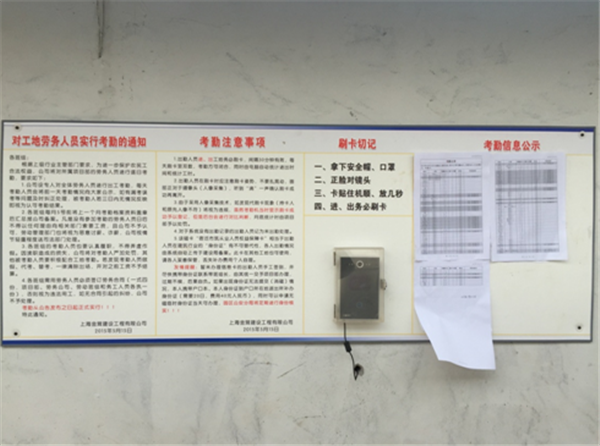 (圖為園區(qū)夢(mèng)家園項(xiàng)目農(nóng)民工實(shí)名考勤處現(xiàn)場)